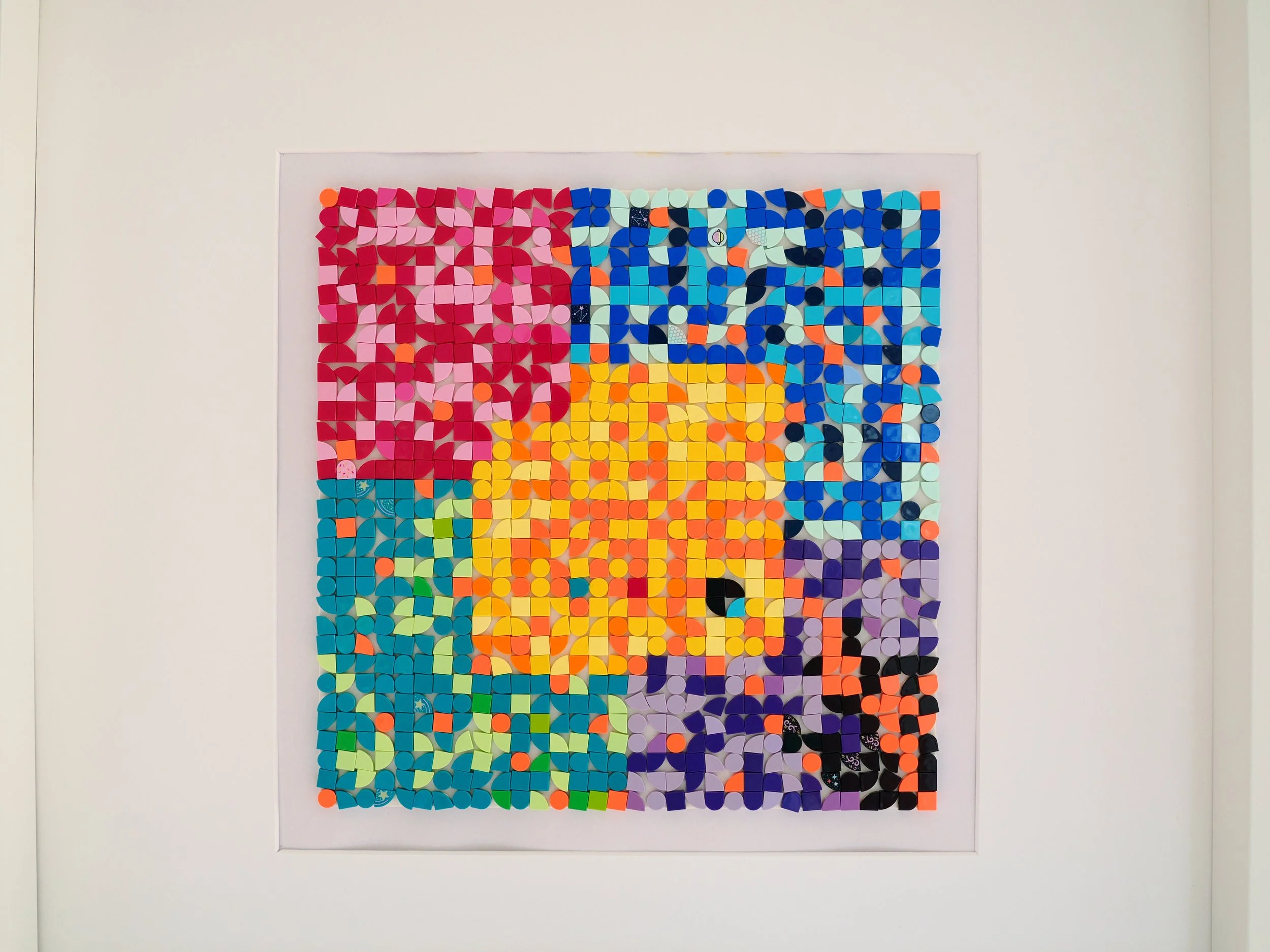 Dots and tiles in a frame. 50 cm x 50 cm, Ed. 1/1., 2023